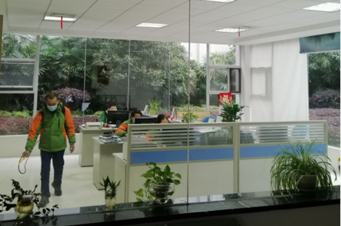 為確保打贏這場防“疫”戰(zhàn),公司在加大疫情防控宣傳力度的同時(shí),還出臺、落實(shí)了一系列措施。例如:指定企管部物業(yè)課每天對全公司范圍進(jìn)行消毒兩次,有檢查有記錄,不留死角;在每一個(gè)衛(wèi)生間都放有洗手液,不斷宣傳督促員工勤洗手、戴口罩,注意養(yǎng)成個(gè)人良好的衛(wèi)生習(xí)慣;實(shí)行錯(cuò)峰分批用餐,排隊(duì)打飯時(shí)相互距離