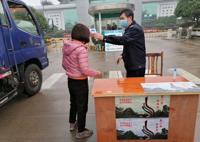 自春節(jié)放假始,公司保安每天全員值勤,禁止外人進(jìn)入公司,在值班經(jīng)理黃經(jīng)理的帶領(lǐng)下,每天安排人員對公司各處進(jìn)行全面消毒。復(fù)工復(fù)產(chǎn)后,每天對全體員工以及外來人員(包括視察、送溫暖的政府領(lǐng)導(dǎo))檢測體溫、佩戴口罩(公司每天給員工發(fā)放口罩),并做好登記工作,凡是發(fā)現(xiàn)有咳嗽、發(fā)熱(體溫超過37.3攝氏度)等癥狀的人員一律不得進(jìn)入公司。同時(shí)對入廠車輛進(jìn)行全車消毒,防止帶入病毒;在公司大門口配置專用消毒水池,對進(jìn)入廠區(qū)的人員鞋底的進(jìn)行消毒。